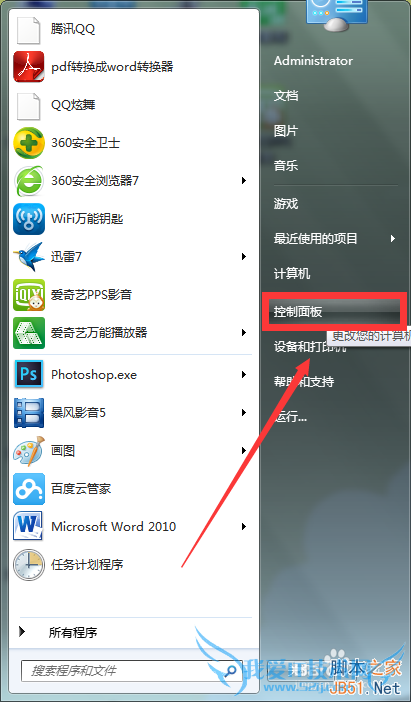 1、点击开始按钮,找到【控制面板】后点击进入。