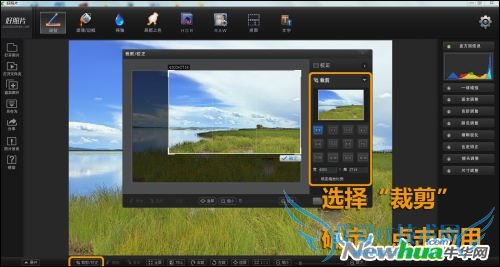 第四步,选择“裁剪/校正”,对图片进行裁剪,使图片的构图更加合理。好照片的裁剪功能,处理提供常用的比例裁剪外,也包括了自由裁剪。你可以根据自己的需要,选择裁剪的大小和比例。