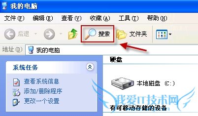 直接双击“我的电脑”,然后单击上面的“搜索”按钮或者点击“开始”->“搜索”。
