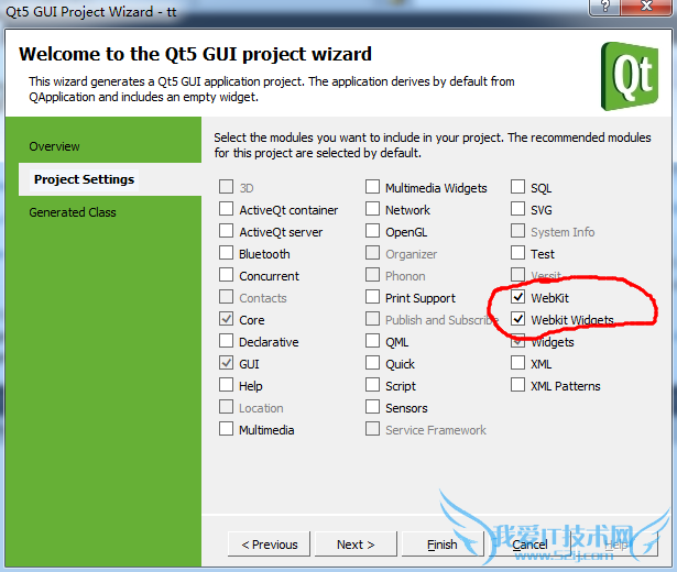 在"Project Settings"里面选中“WebKit”和“Webkit Widgets”选项: