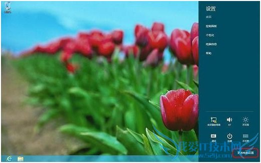 1) 在Windows 8系统中将鼠标移动到右下角,出现一排图标,点击[设置]。