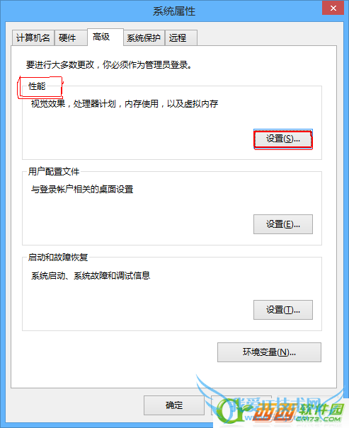 第三步:进入到系统属性界面,在性能选项点击“设置”。
