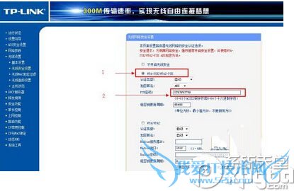 5、在右边的无线安全设置窗口中,点击1“WPA-PSK/WPA2-PSK”,再点击2“PSK密码”,就可在输入框里输入或修改无线PSK密码了,完了以后要点击最下端“保存”,这样就完成无线网络密码设置或修改了