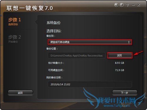 也可选择其他路径存放系统备份,单击浏览更改路径,如图:
