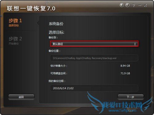 该软件会选择默认路径作为备份文件存放路径,如图: