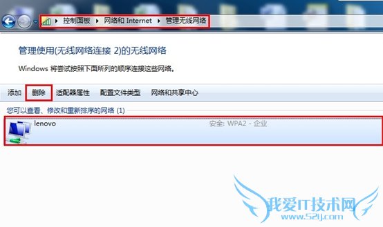 (1)进入控制面板---网络和Internet---网络和共享中心---管理无线网络,选中自己正在使用的无线网络,点击删除(如下图),然后重新连接无线网络;