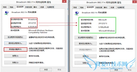 (3)如上述方案(1)(2)无效,请回滚无线网卡的驱动程序至微软自带驱动选择“设备管理器”,右键选择“无线网卡属性”,点击“驱动程序”,选择“回滚驱动程序”,如下图:
