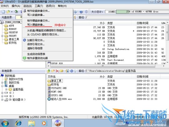 本文以刻录“金狐多功能系统维护盘2009”为例进行图文讲解,供新手朋友参考。顺便介绍如何对ISO镜像内的文件进行添加、删除和替换等操作。