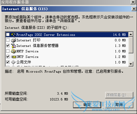 选择“应用程序服务器”→“Internet信息服务(IIS)”,在“Internet信息服务(IIS)”对话框中找到“SMTPService”,确保它已经被选中。如下图:
