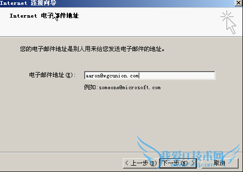 2.在“电子邮件地址”中填入之前设置的邮件地址,如:aaron@wgcunion.com。如下图: