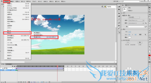 1、选择菜单栏中的文件—导出—导出影片,或者直接使用快捷键Ctrl+Alt+Shift+S,如下图所示: