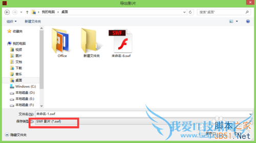 2、我们保存到桌面上,最好选择SWF影片类型,因为这种类型占用空间最小哦!