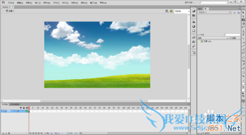 2、选择菜单栏中的文件—导入—导入到舞台,导入我们的风景图片,如果导入的图片过大,按住shift键等比例缩小到合适的大小。