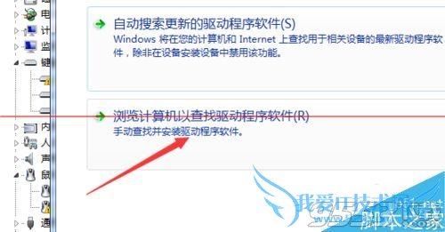 3、选择更新驱动程序软件,点击浏览计算机查找