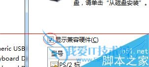 5、将‘显示兼容硬件’的勾去掉,选择一个不兼容的驱动安装