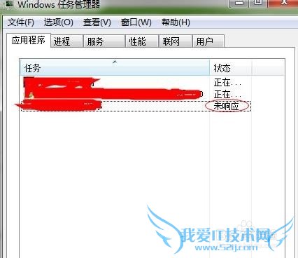 4、出现“未响应”的程序将其关掉即可,先将任务窗口中选择“未响应”的程序名字