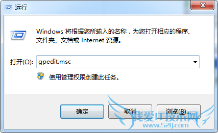 2、在打开的运行对话框中输入“gpedit.msc”字符命令,按确定键;