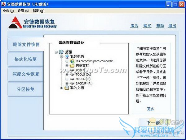 软件评价:扫描速度比较慢,但是效果不错,而且能够修复已经损坏的Word和Zip等文件。扫描后的结果以单独目录方式显示和恢复(就是目录套目录时,会把所有目录平行的显示和恢复),不能做到深层目录的直接恢复。