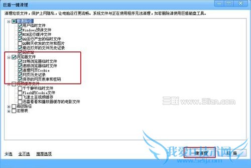 2.除了浏览器自带的删除功能外,我们还可以使用巨盾的垃圾文件清理工具将网页历史记录删除。打开巨盾的一键清理工具,将“浏览器文件”前面的勾选上,然后选择“一键清理”,这样就可以将烦人的网页历史记录删除干净了。这个方法既简单又快速,建议大家使用。