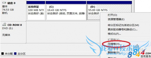 找到你硬盘非系统盘具有较大剩余空间的盘,右键,点"压缩卷",在压缩大小中填入"26906"。