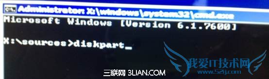 3. 输入”Diskpart”(不用输入引号,下同),并按回车,进入操作界面;