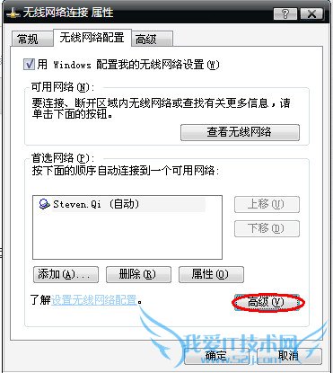⒎如图你可以看到你刚才设置的那个无线网络了,并点击“高级”选项