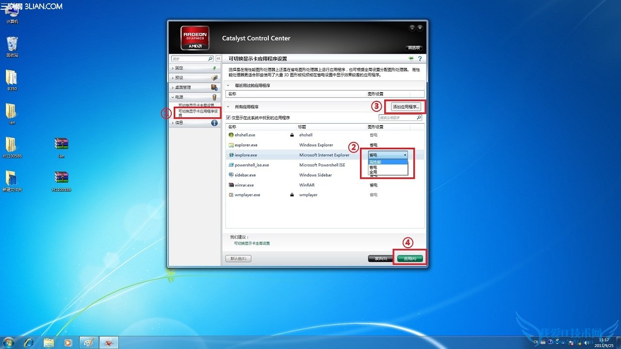 4. 除了全局设置显卡,我们还能针对某个单独的程序选择使用哪个显卡,如果您要设置的程序或者游戏已经在显示列表内,直接在后面“高性能”(独显)、“省电” (集显)或者全局(根据你的全局设置的显卡模式)。如果你要设置的程序或者游戏不在列表内,请单击“浏览”,找到您对应的程序或游戏,之后再设置显卡即可。
