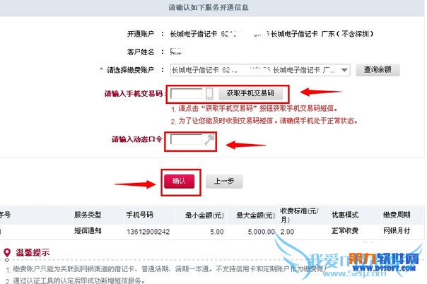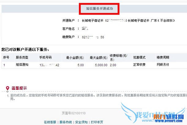 这时我们就已经看到成功开通短信服务功能了。随时可以享受资金变动提醒的服务。