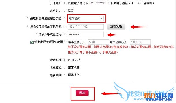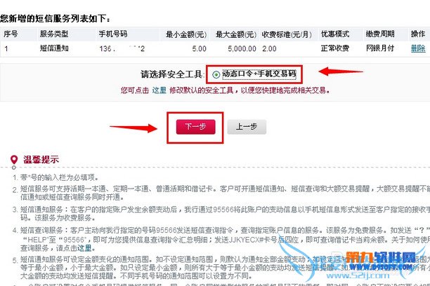 【1】 选择短息通知的话可以自由设置变动金额起点,每月收费2元服务费。