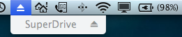 如果你到现在为止还是光驱的重度使用者,其次再加上如果你用的不是苹果标准键盘的话,经常弹出光驱的确是麻烦事。那么我们就在菜单栏上放一个光驱弹出按钮。