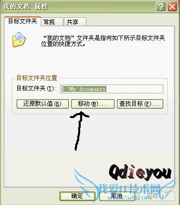 点击箭头所指!就可以把我的文档的默认路径移动到其他盘了