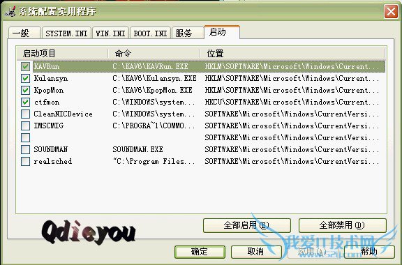 防火墙,rfw开头的是瑞星防火墙,kfw可能是金山的,呵和。输入法98/me/2000输入法是internat,XP/2003输入法是ctfmon。