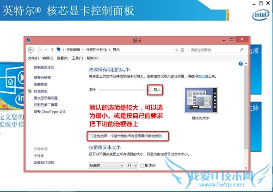 更改所有项目的大小里可以把现在为较大改成较小,就恢复到了最原始的状态,操作需要注销后生效。