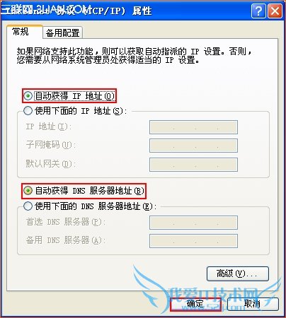 第四步:选择“自动获得IP地址”,“自动获取DNS服务器地址”,确定即可