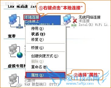 注意:如果想配置无线网络ip,右键点击“无线网络连接”选择“属性”