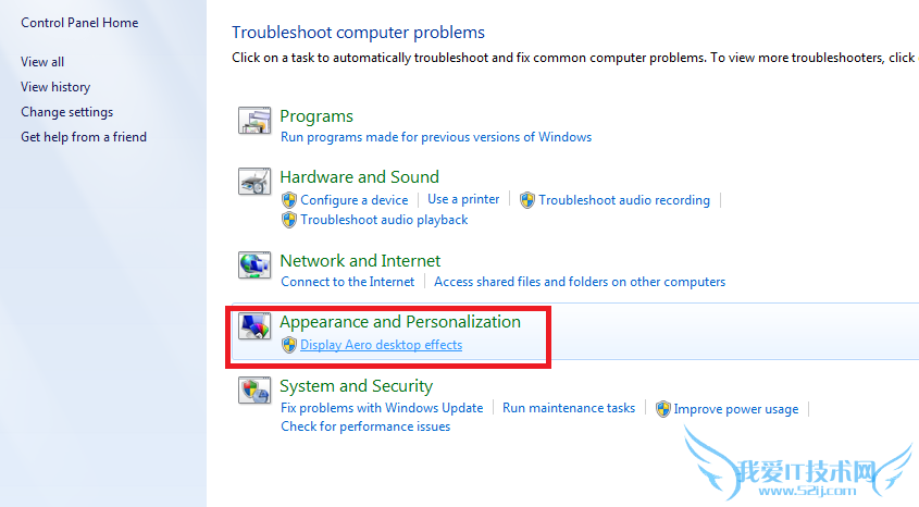 如果问题还没解决,则打开控制面板---->System and Security, Find and fix problems, 然后选择Appearance and Personalization去看看到底有什么问题吧
