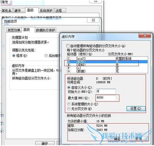 设置小技巧:虚拟内存最高可调实际内存的2倍,推荐大家采用1.5左右。当然也可以自己慢慢调试达到自己理想设置。