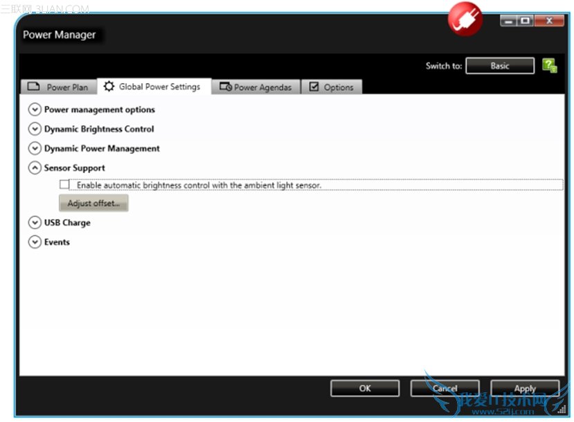 在电源管理软件汇总关闭感光探头可解决此问题,步骤如下:
