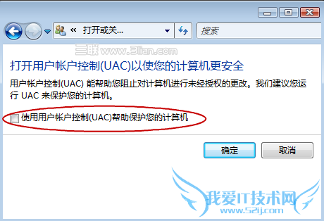 2.把使用用户帐户控制(UAC)帮助您的计算机前面的勾去掉,然后确定。