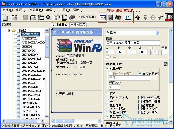 点击对话框前面的+ ,点 ABOUTRARDLG 这个文件 打开编辑模式,图中有。