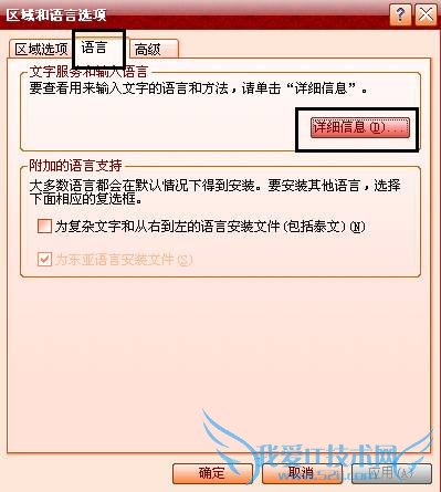 3.切换到“语言”选项卡,点击“详细信息”按钮