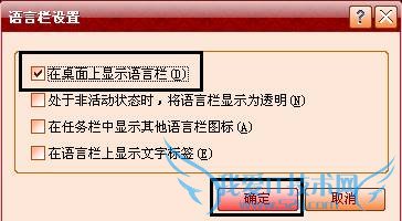 5.勾选第一个选项“在桌面上显示语言栏”和第三个选项“在任务栏中显示其他语言栏图标”,点击“确定”按钮保存退出。