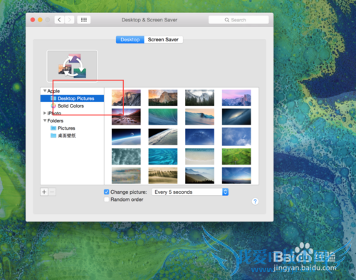 下面选择桌面更换的频率和速度,我们选择了5秒钟;如图