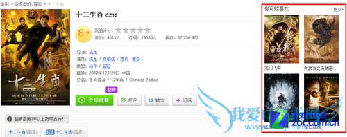 其实当你点开一部你想看的影片的资料页时,在右侧你还能看到更多同类影片推荐。比如在收看《十二生肖》时我们还能看到旁边《死亡游戏》、《征服者》、《龙门飞甲》等推荐影片,或许会引起你的兴趣。想想有这么多的片源备份,一时半会儿肯定是不会没有电影可看的。