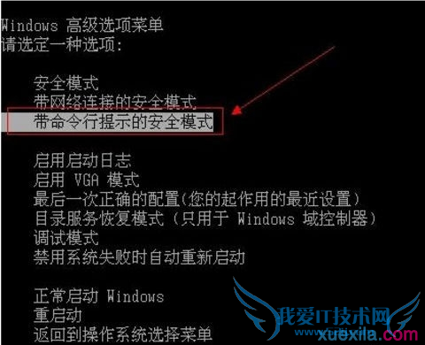 安全模式下破解开机密码如果是管理员Administrator的密码忘记的话,重新启动电脑,开机后连续按F8键直到高级选项画面出现后,再松开手,选择“命令提示符的安全模式”回车。