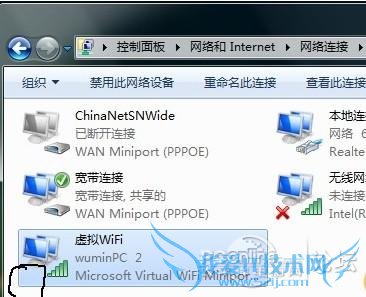 开启成功后,网络连接中会多出一个网卡为“Microsoft Virtual WiFi Miniport Adapter”的无线连接2,为方便起见,将其重命名为虚拟WiFi。若没有,只需更新无线网卡驱动就OK了。