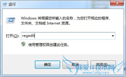 2、在打开的运行对话框中输入“regedit”字符命令,按回车键;