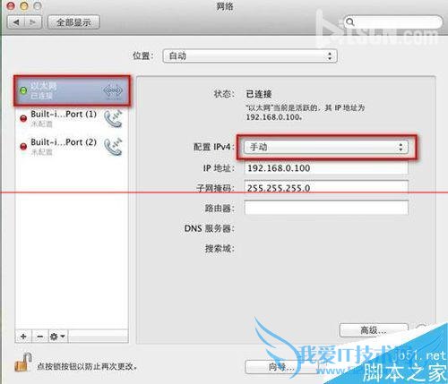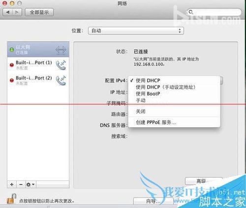 6、第四步 将打印服务器按照预订的使用拓扑与打印机和路由器连接好,将您的MAC电脑的IP地址改回之前的数值,例如配置IPv4改为使用DHCP或者手动指定为原来的IP地址。
