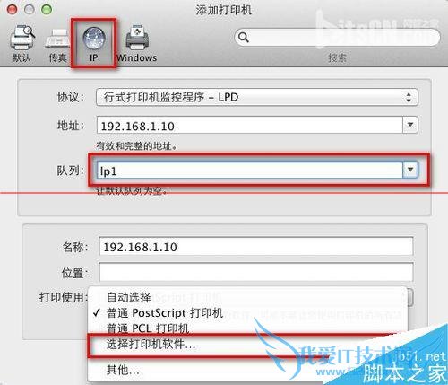 10、协议:行式打印机监控程序-LPD。地址:打印服务器的IP地址。队列:lp1。打印使用:通过选择打印机软件选项来选择您打印机所对应的驱动后点击好按钮。