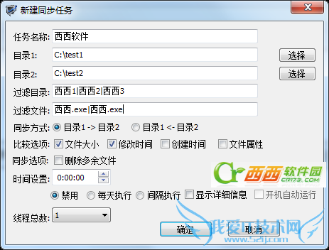 线程总数:同步时复制文件的线程数,经实测,如果源和目标在一个硬盘上,请用1个线程。